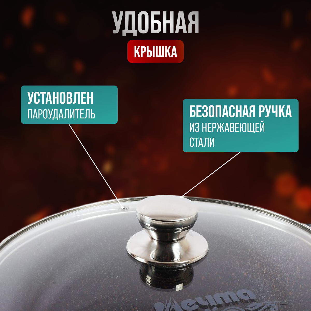 Кастрюля "Мечта" 3 л. с антипригарным покрытием со стеклянной крышкой