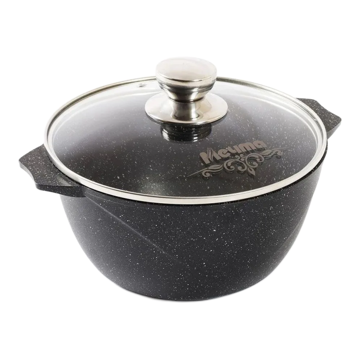 Кастрюля Мечта Гранит Black литая с антипригарным покрытием, со стеклянной крышкой, 6л, гранит black