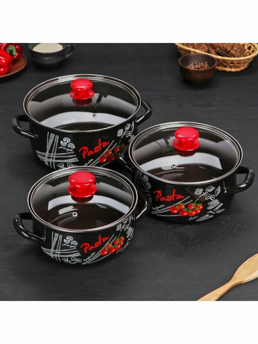 Керченская эмаль Набор кастрюль «Болоньезе», 3 предмета: 2 л, 3 л, 4 л, d=20,5/23/26 см, индукция, цвет чёрный