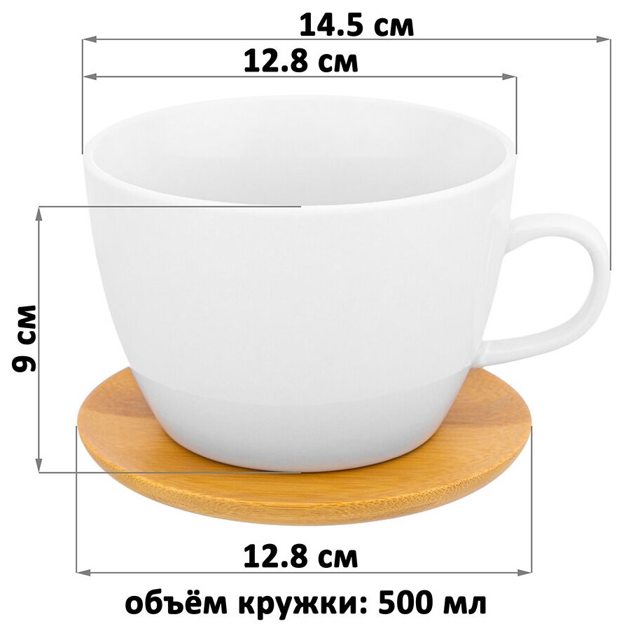 | Плюсы: | Красивая большая чашка. Нет никаких глупых картинок, надписей. Просто белая чашка и бамбуковая подставка. |