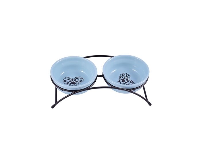 Купить КерамикАрт Миски на подставке для собак и кошек двойные, синие 2x290 мл