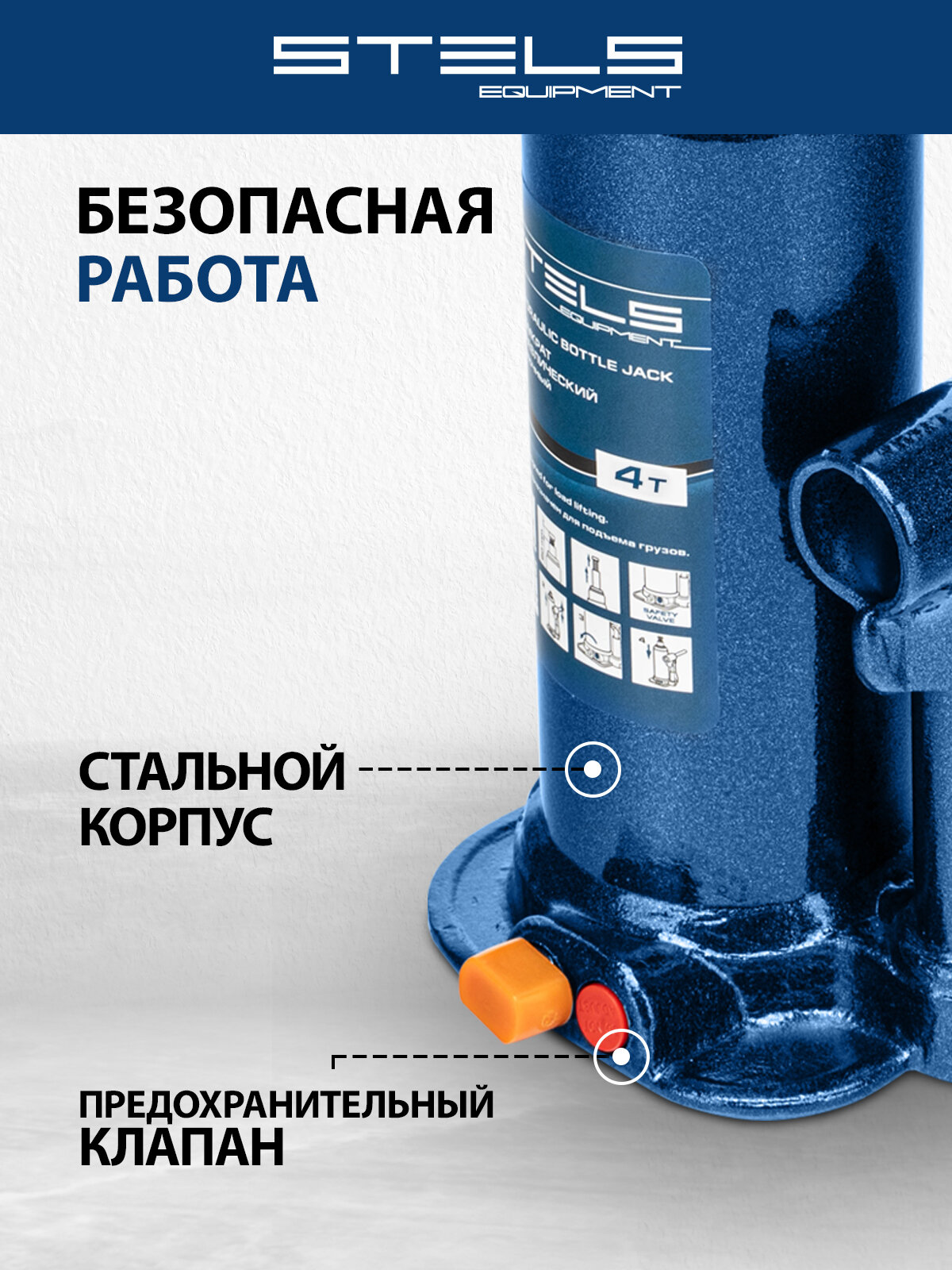 Домкрат бутылочный гидравлический Stels 51162 (4 т) синий