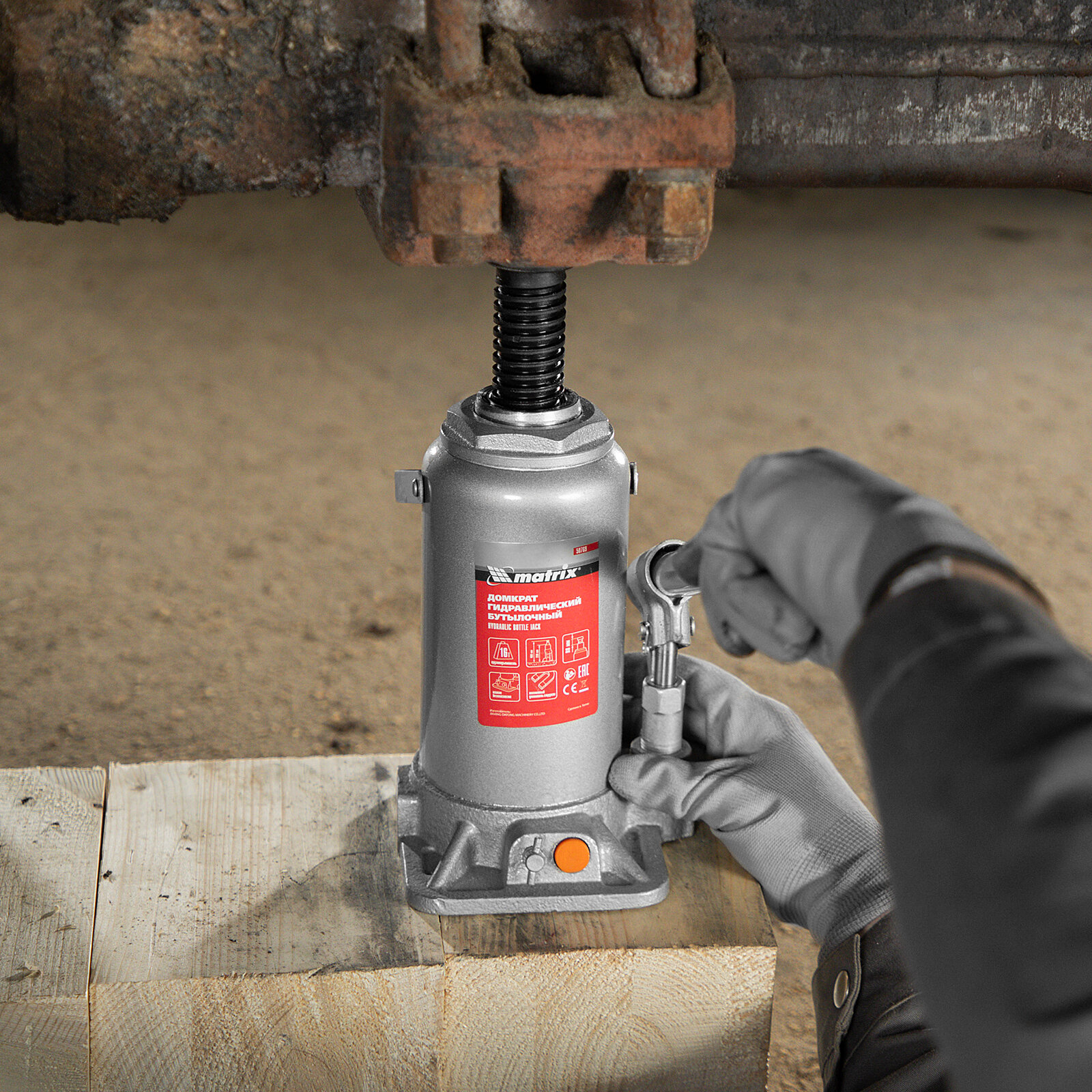 Домкрат гидравлический бутылочный Matrix 16 т, h подъема 230–460 мм 50769
