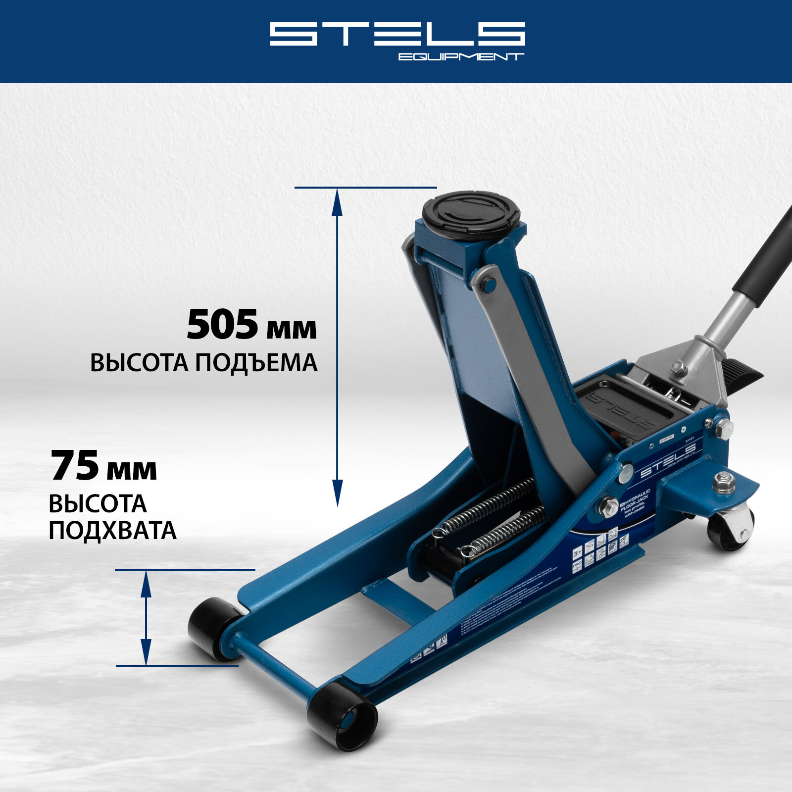 Домкрат гидравлический подкатной Stels Equipment STELS 3т QUICK LIFT, 75-505 мм, профессиональный, с педалью, 51137