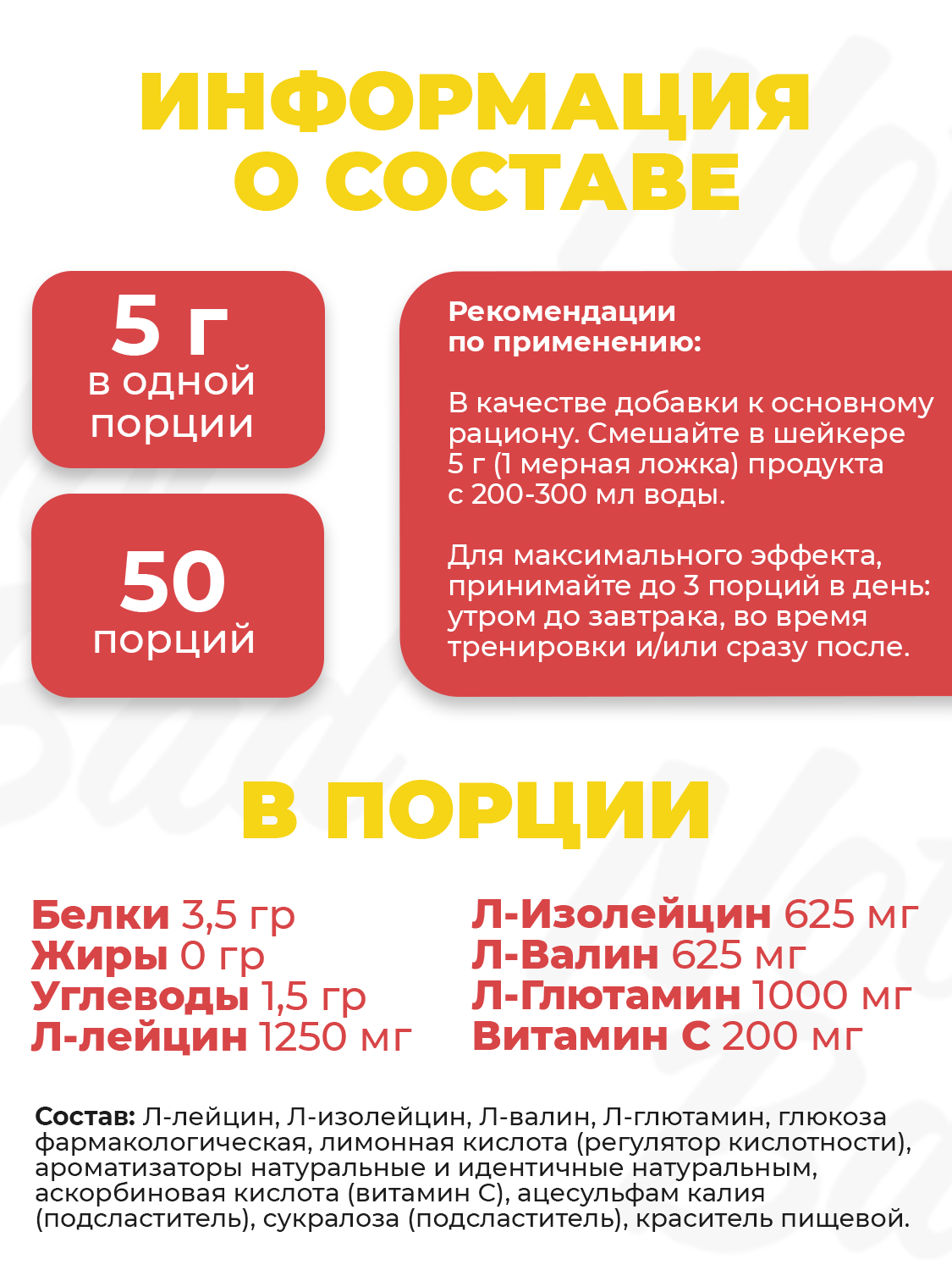 | Плюсы: | Вкусный BCAA, растворяется хорошо |