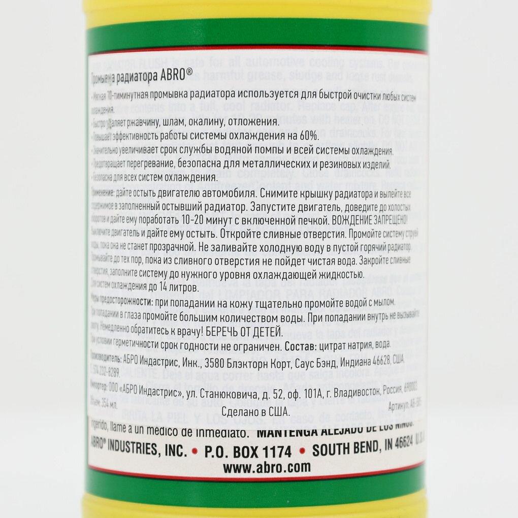 Промывка Радиатора В Пластике (354 Мл) Abro Ab-505 (Производство Сша) ABROAB505