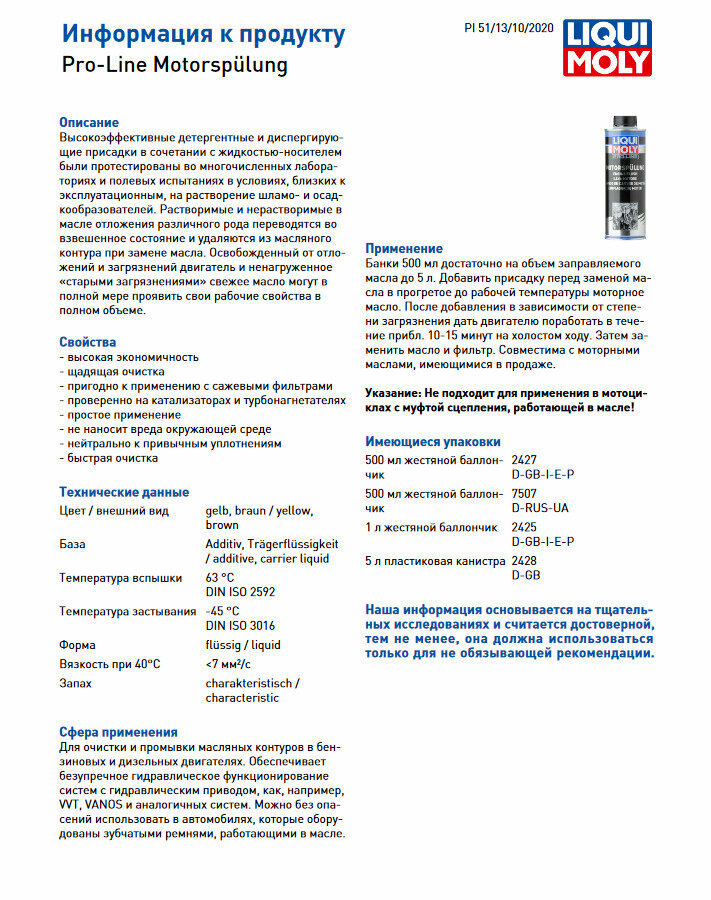 LIQUI MOLY 7507 Ср-во д/промывки двиг. LiquiMoly Профи Pro-Line Motorspulung (0,5) LIQUI MOLY 7507
