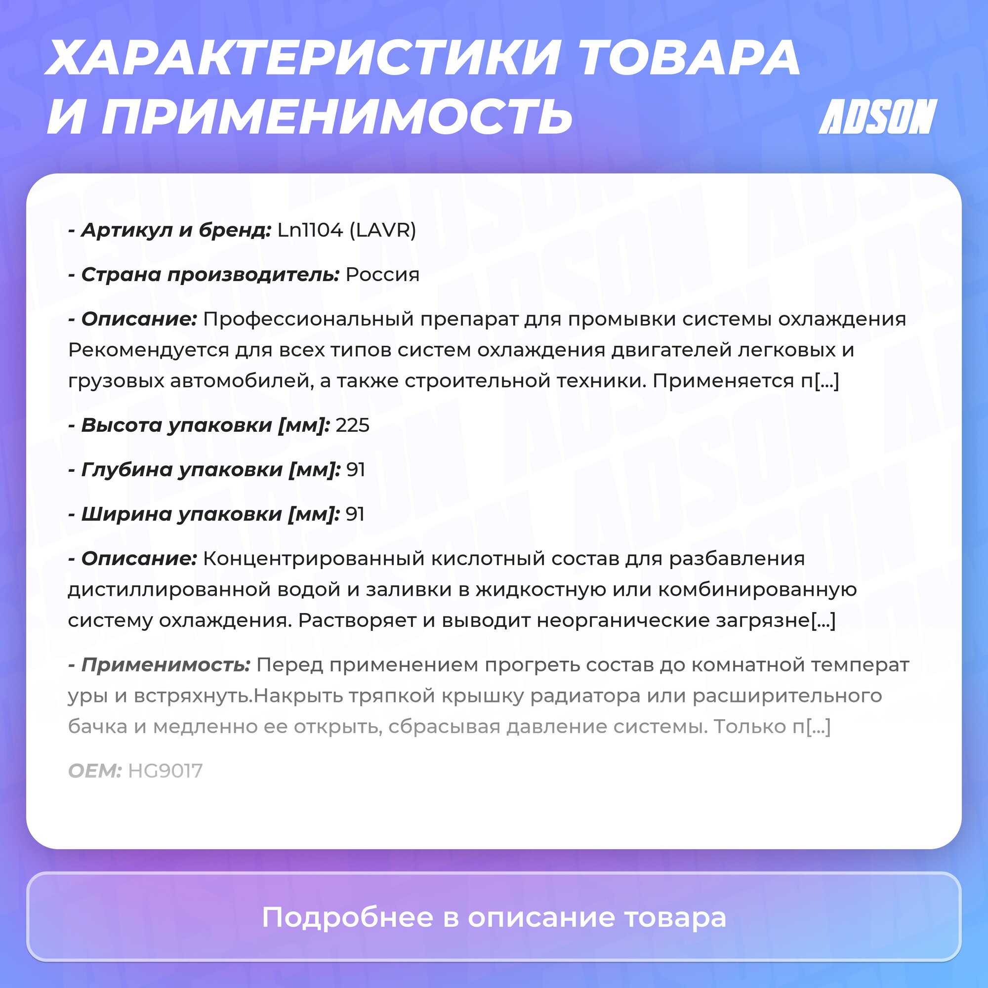 промывка системы охлаждения lavr ln1104 980мл классическая для коммерческого транспорта