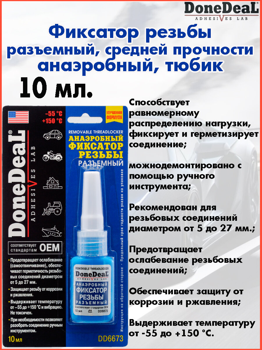 DONE DEAL DD6673 10ml\ анаэробный фиксатор резьбы разъемный. герметезирует резьбовые соед