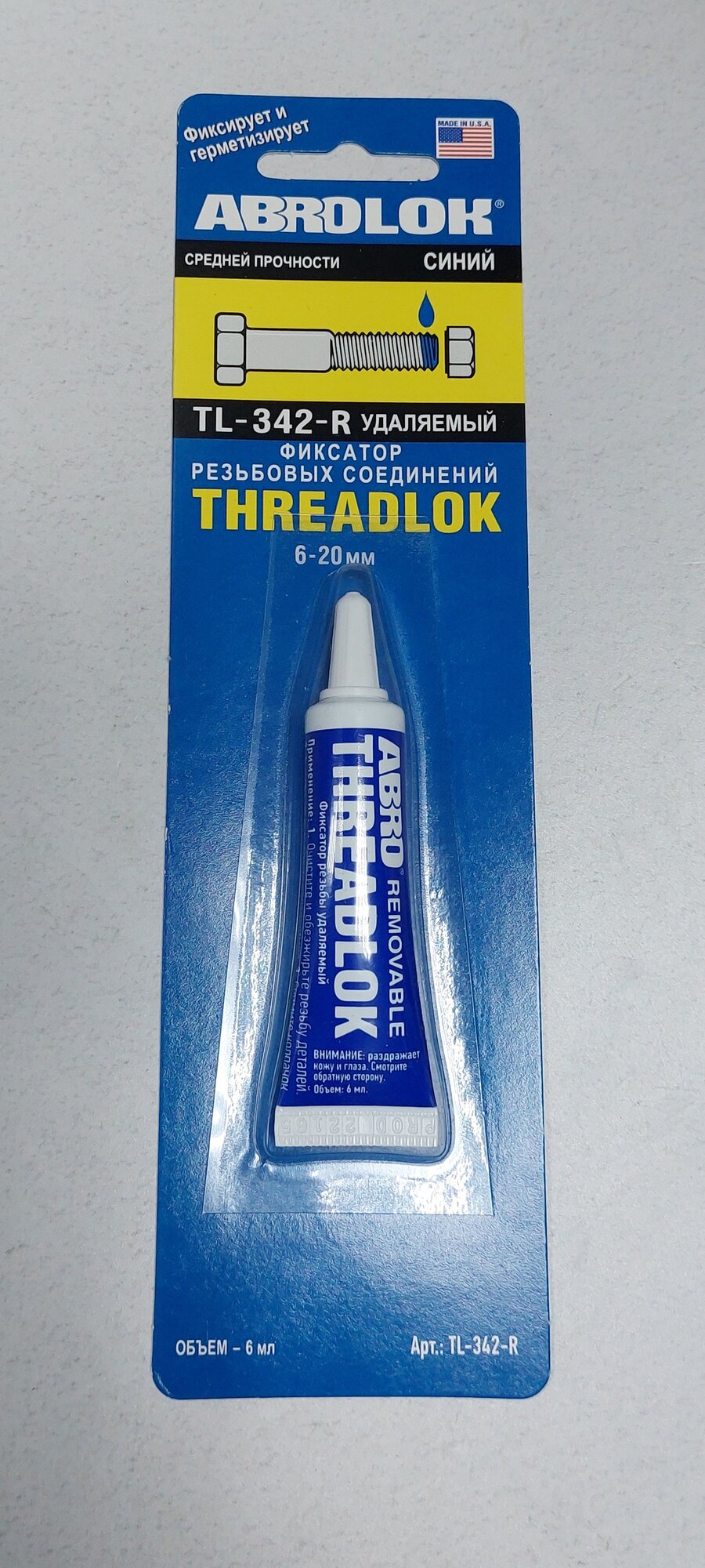 Фиксатор резьбовых соединений удаляемый (разъемный) синий ABRO 6 мл арт. TL-342