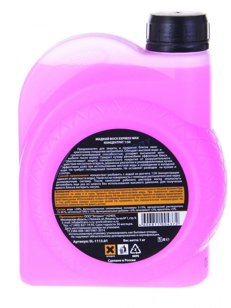 Воск для автомобиля ELTRANS EXPRESS WAX жидкий воск 1 л. концентрат 1:50 (средство моющее нейтральное H800) EL-1113.01
