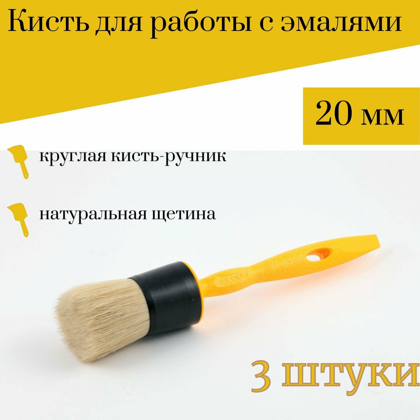 СохранитьКисть круглая 20 мм Акор Эксперт, 3 штук интересное: