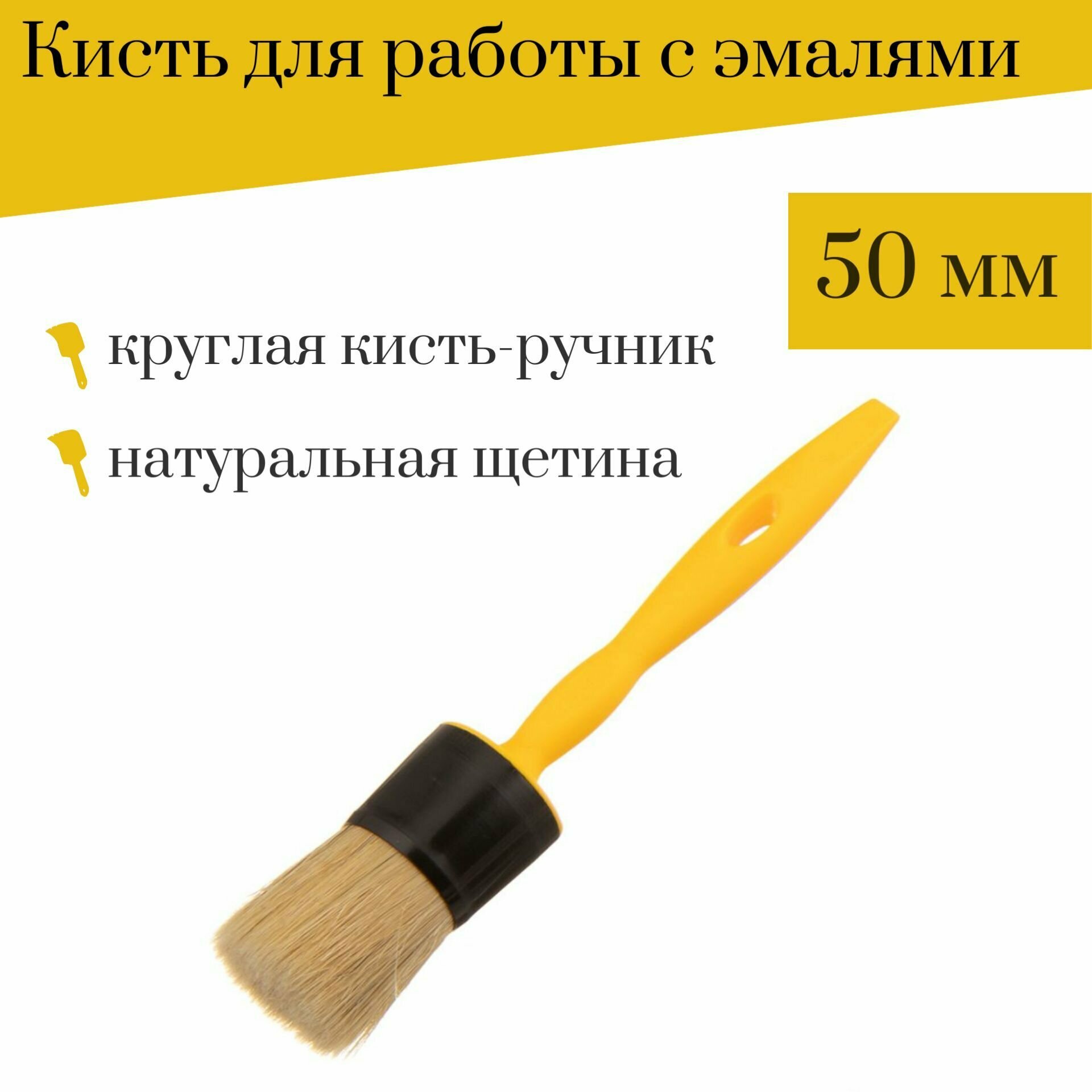 Кисть, Акор, круглая "Эксперт", 50мм, в/в 64мм, натуральная щетина