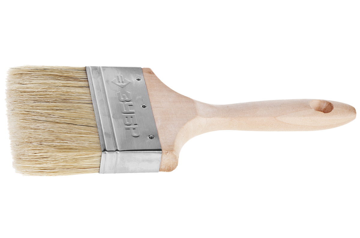 ЗУБР универсал, 100 мм, 4″, светлая натуральная щетина, деревянная ручка, все виды ЛКМ, плоская кисть (01005-100)