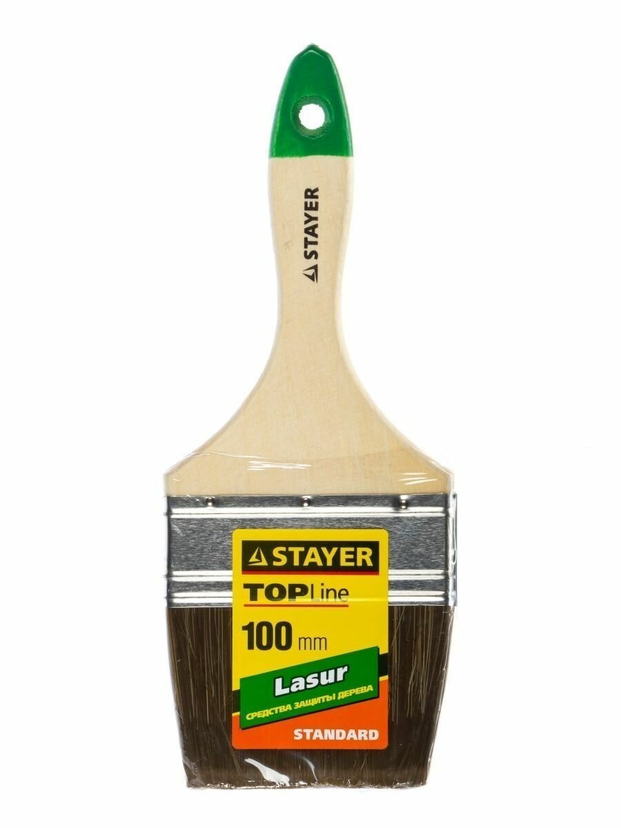 STAYER LASUR 100 мм, 4″ смешанная щетина, деревянная ручка, Плоская кисть, STANDARD (01031-100)