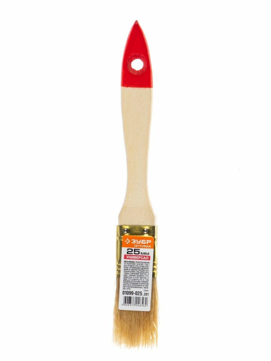 ЗУБР универсал 25 мм, 1" светлая натуральная щетина, деревянная ручка, Плоская кисть, оптима (01099-025)