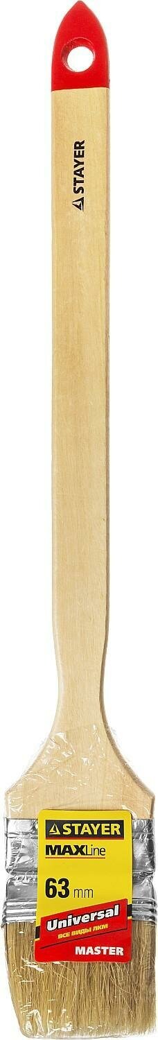STAYER UNIVERSAL 63 мм, 2,5" светлая натуральная щетина, деревянная ручка, для всех видов ЛКМ, Радиаторная кисть, MASTER (0112-63)