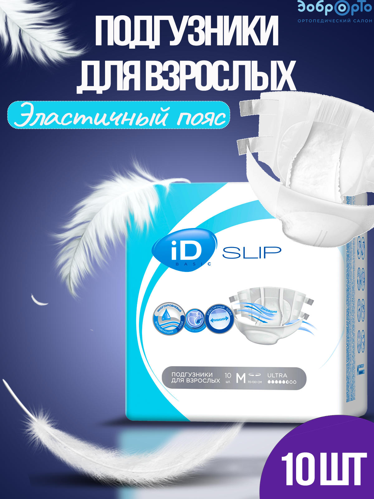 Подгузники iD Slip BASIC Medium 10 шт для взрослых