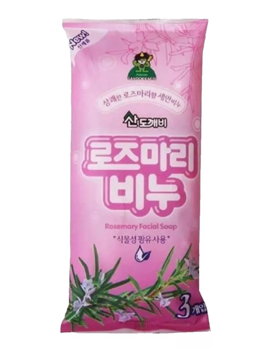 Sandokkaebi мыло / Косметическое туалетное мыло для рук и лица на основе плодов масличной пальмы / мыло твердое с ароматом розмарина , 80 г х 3 шт. / Корея