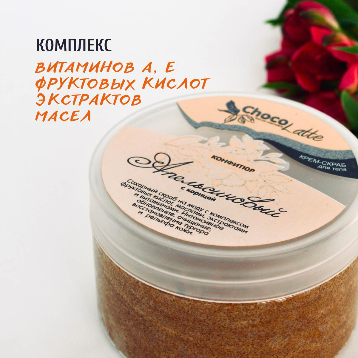 ChocoLatte Крем-скраб сахарный на меду для тела конфитюр апельсин с корицей, 280 гр интересное: