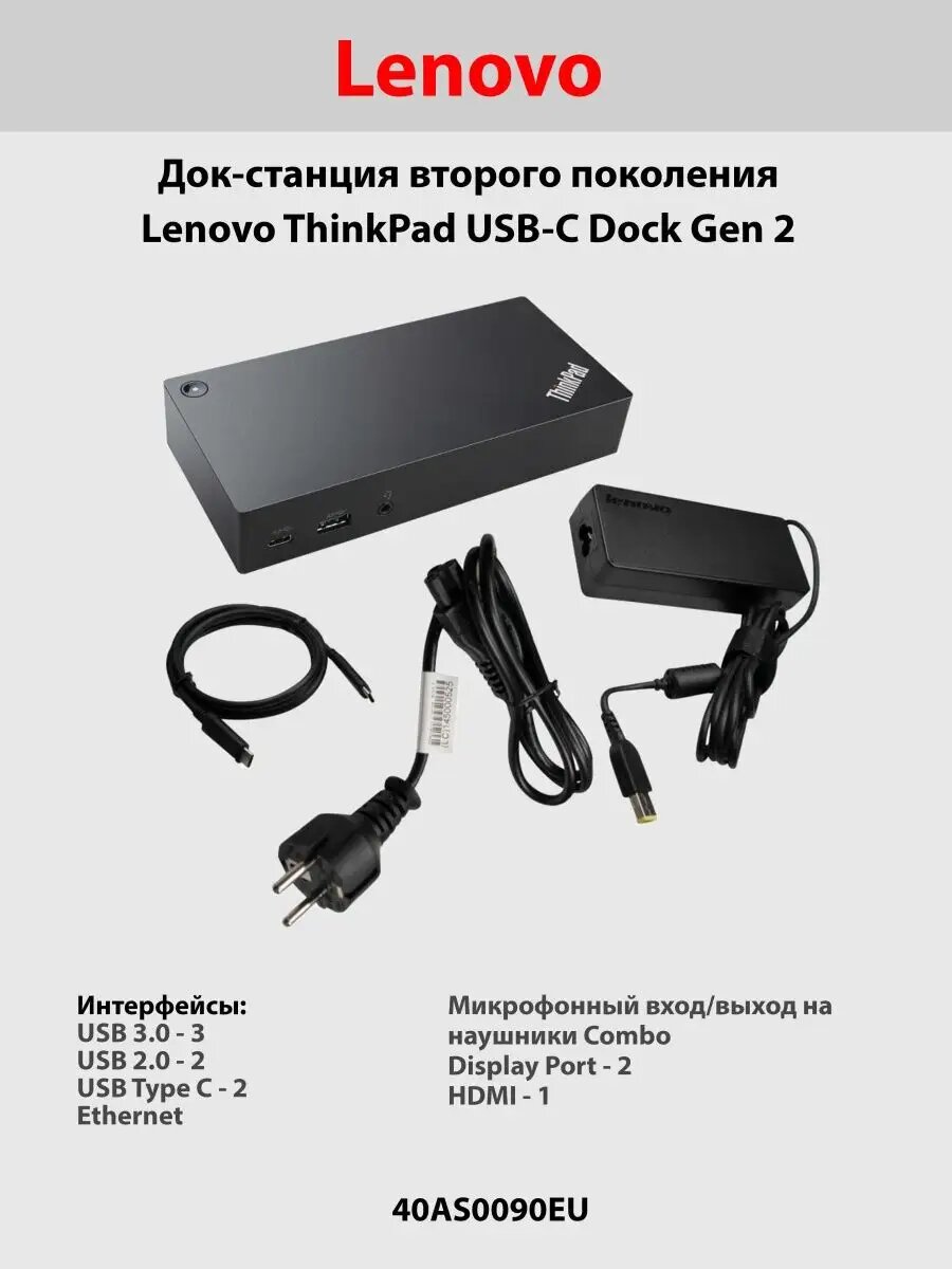 Док-станция Lenovo ThinkPad USB-C Dock Gen2 (40AS0090EU)