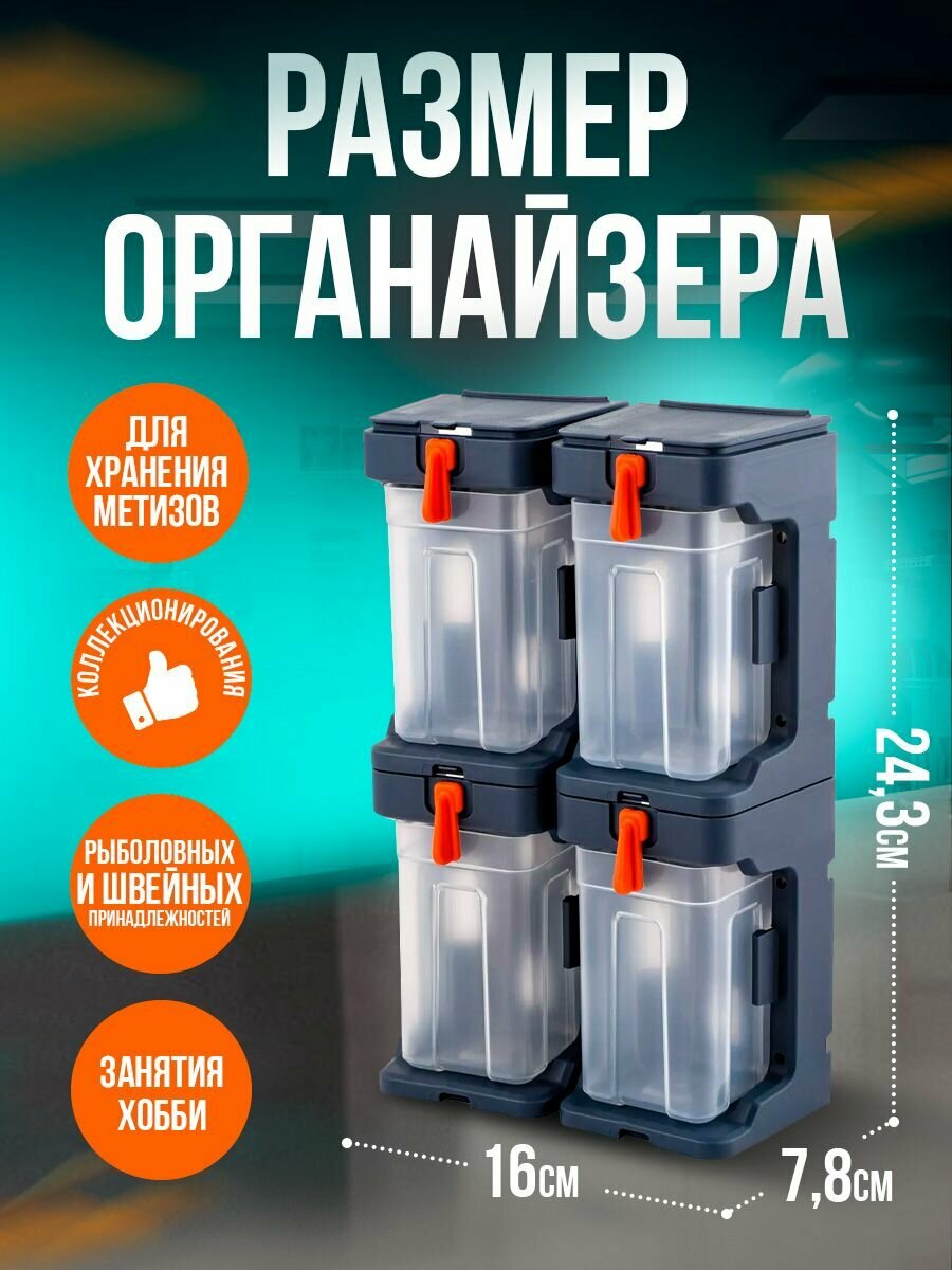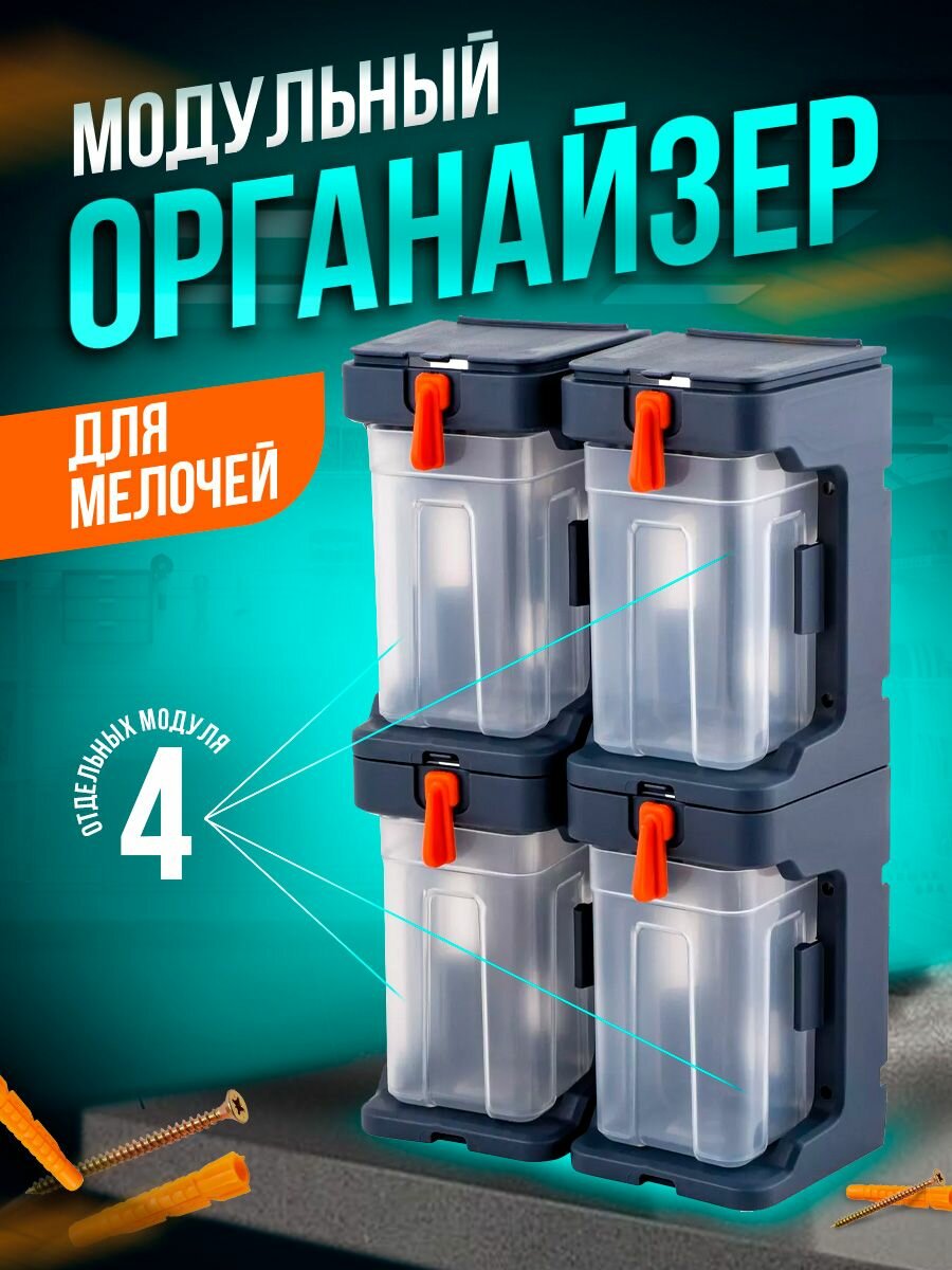 Купить Органайзер Expert малый со съемными прозрачными боксами для строительных аксессуаров метизов гвоздей 4 лотка модуля с подставкой и крепежом на стену