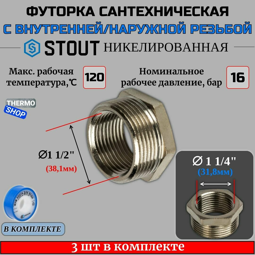 Футорка STOUT SFT 0029 - 1"1/2 x 1" (для стальных труб, латунь никелированная)