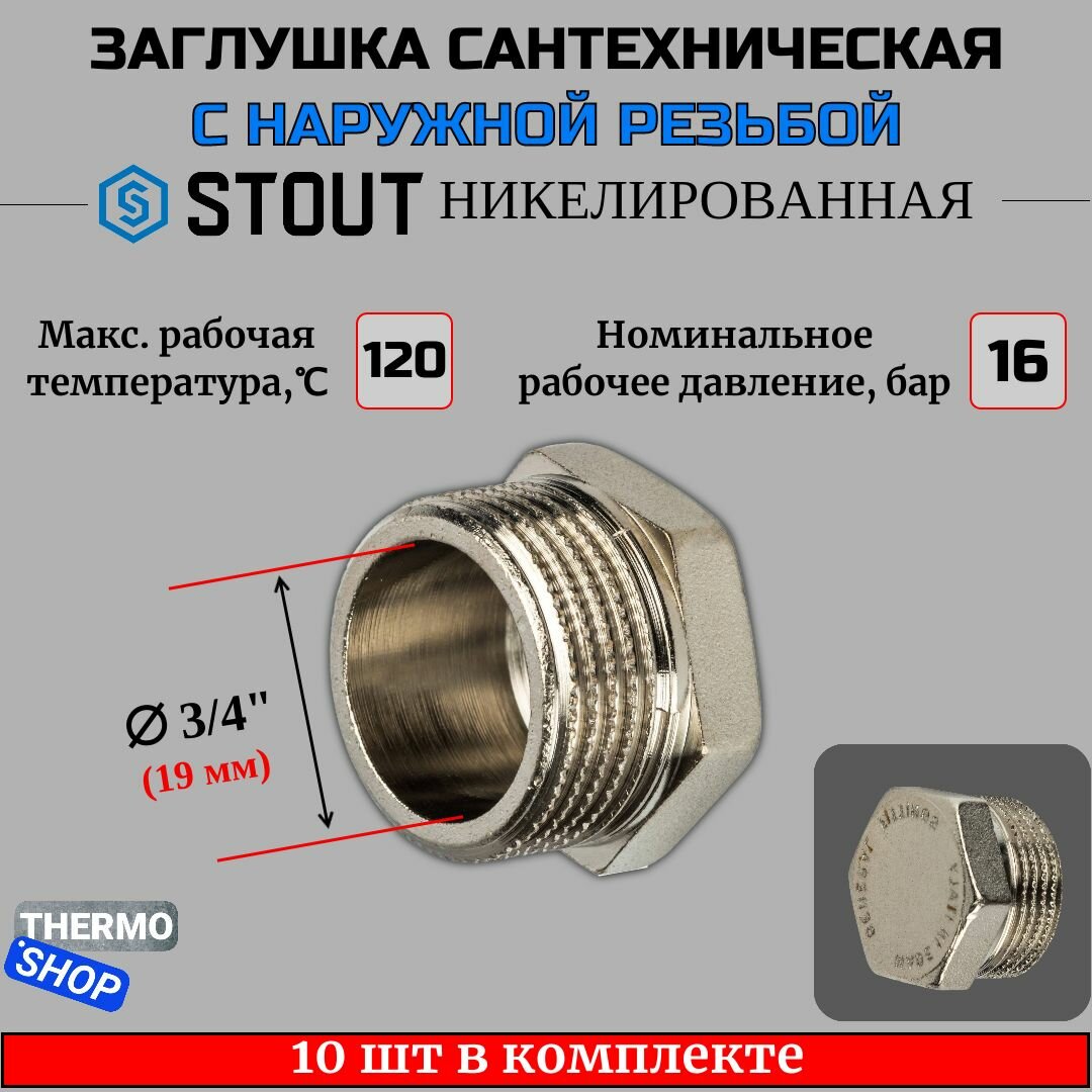 Купить Заглушка НР никелированная 3/4 STOUT 10 шт в комплекте SFT-0025-000034