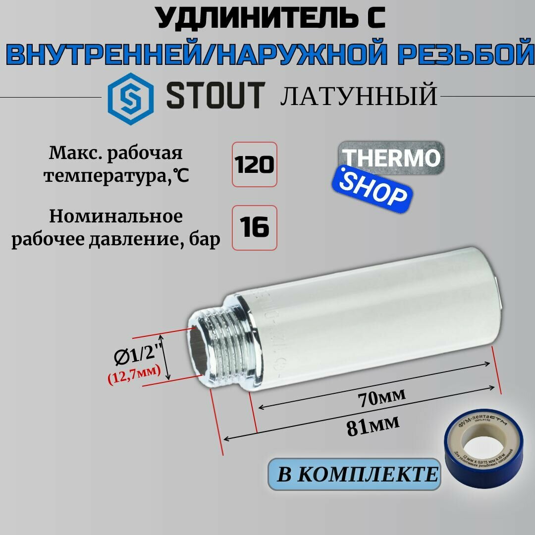 Stout Удлинитель хромированный 1/2" х 70 ВН