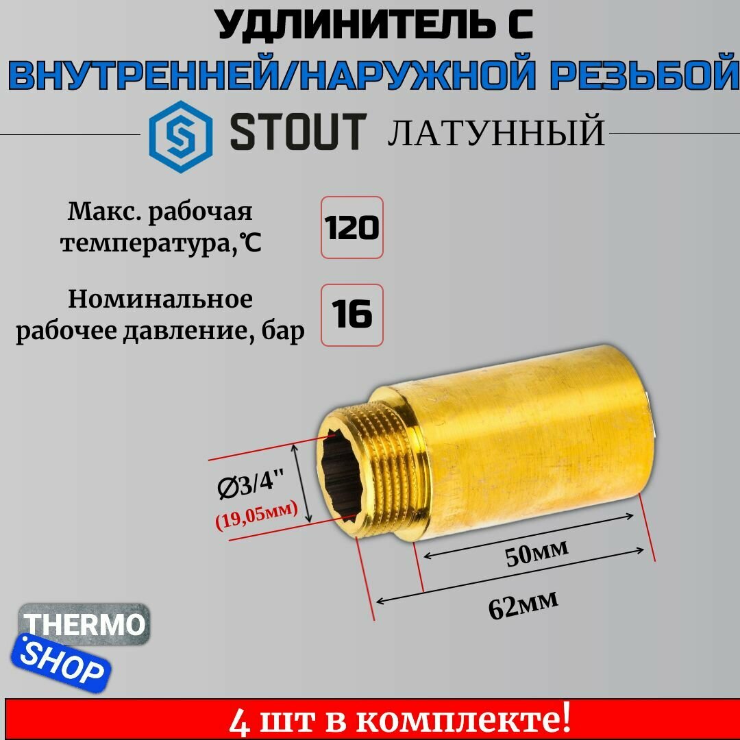 Фитинг резьба удлинитель STOUT SFT-0002-003410 3/4"x3/4"