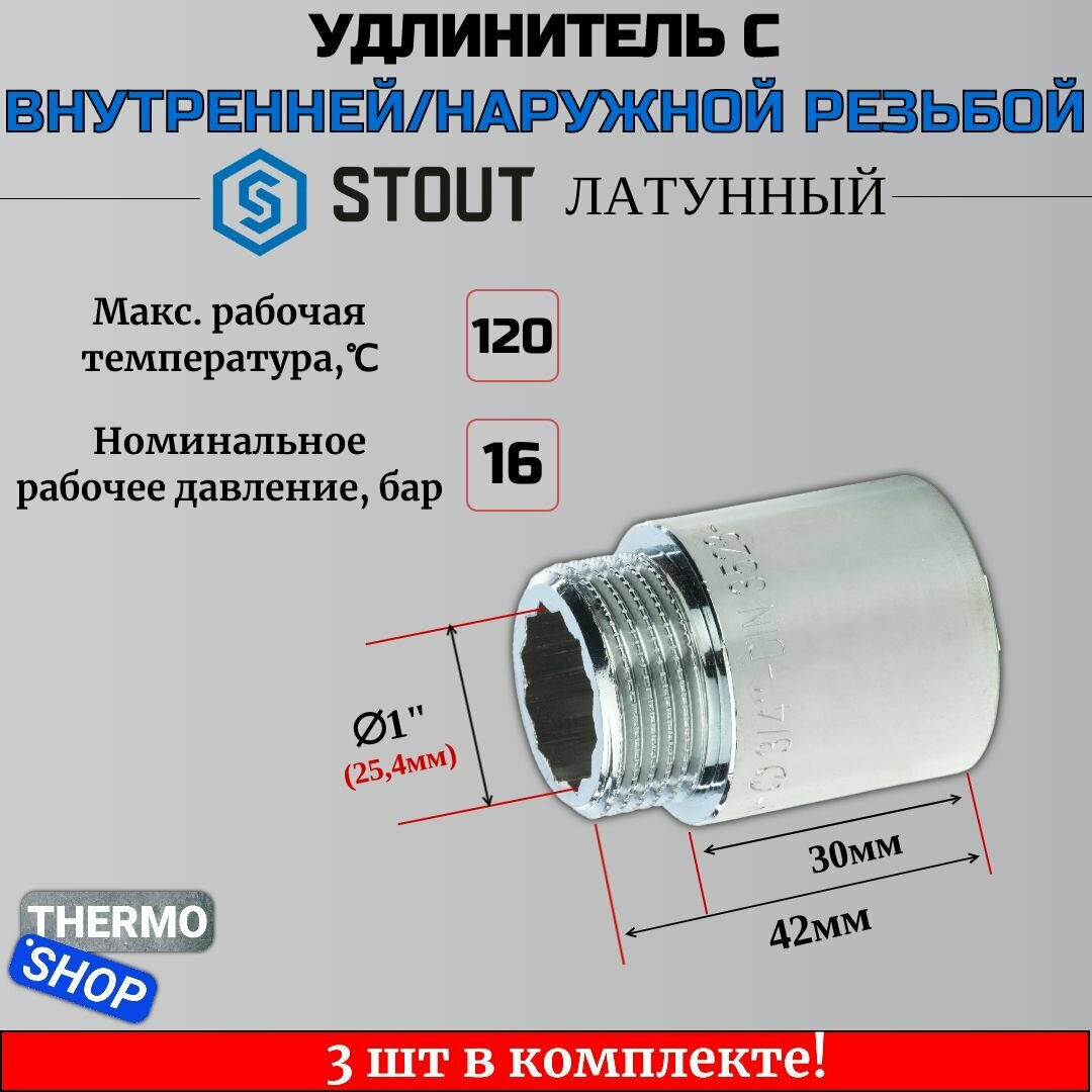 Удлинитель Stout (SFT-0002-001230) 30 мм х 1/2 ВР(г) х 1/2 НР(ш) латунный