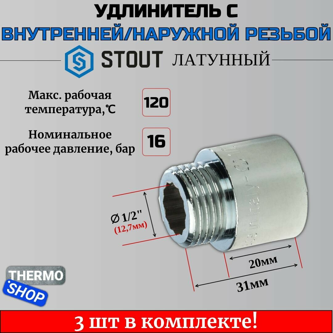 Удлинитель Stout (SFT-0002-001230) 30 мм х 1/2 ВР(г) х 1/2 НР(ш) латунный