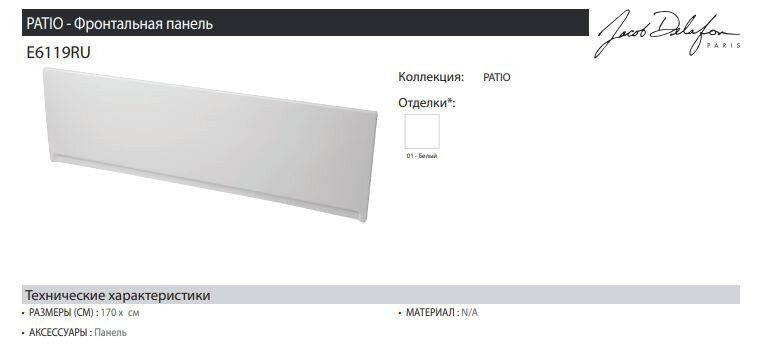 СохранитьПанель фронтальная для ванны Jacob Delafon Patio E6119RU-01 интересное: