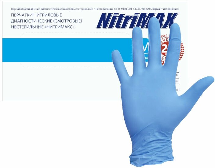 NITRIMAX перчатки одноразовые нитриловые голубые, 50 пар. L