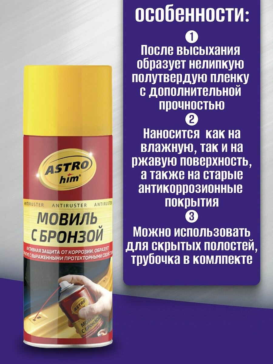 СохранитьМовиль для автомобиля с бронзой ASTROhim, серия Antiruster, аэрозоль AC4815 интересное: