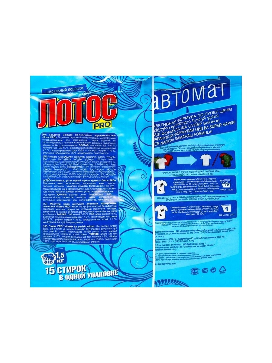 Стиральный порошок лотос автомат 1,5 кг