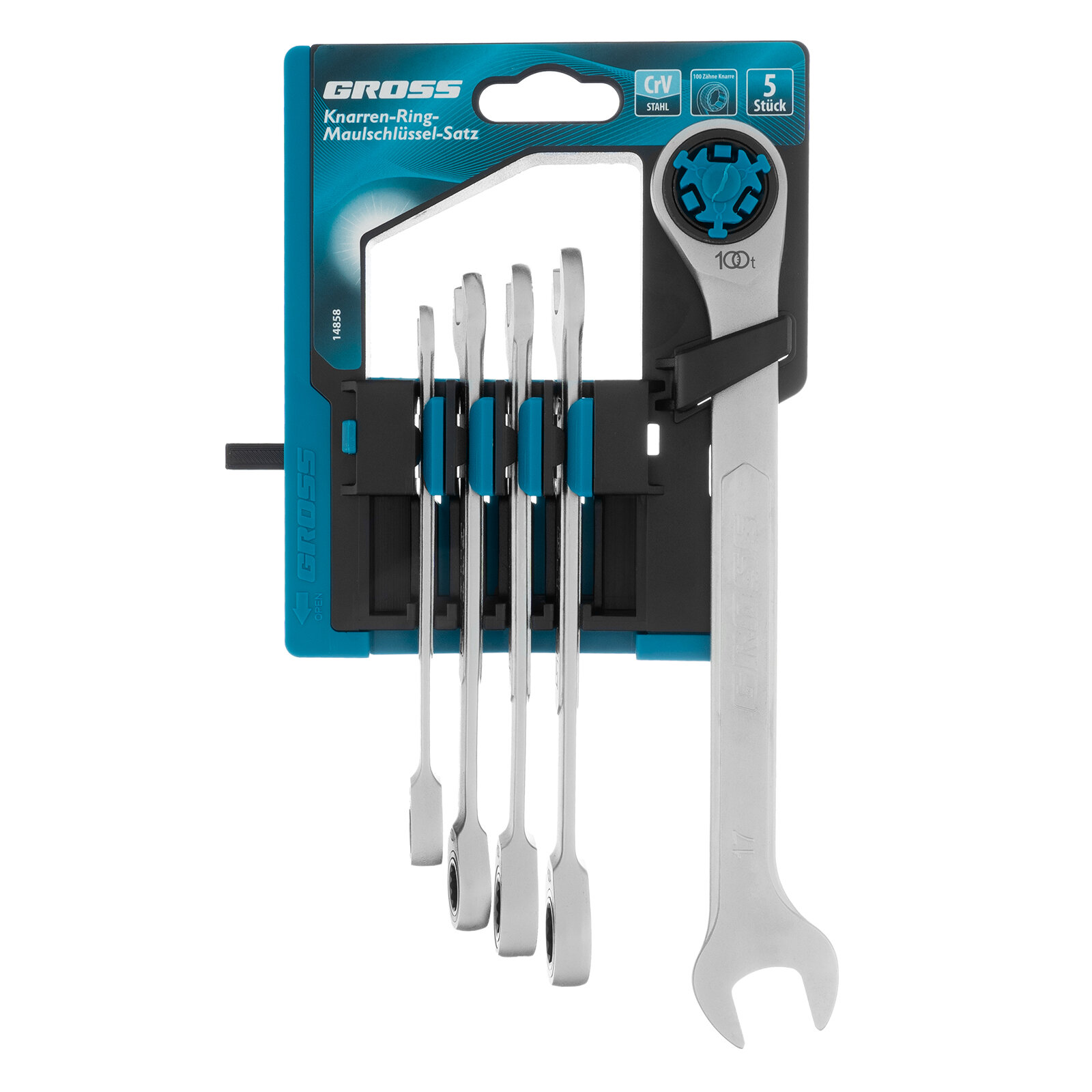 Набор ключей комбинированных Gross 14858, трещоточных, CrV, 8-17 мм, 5 шт. Gross