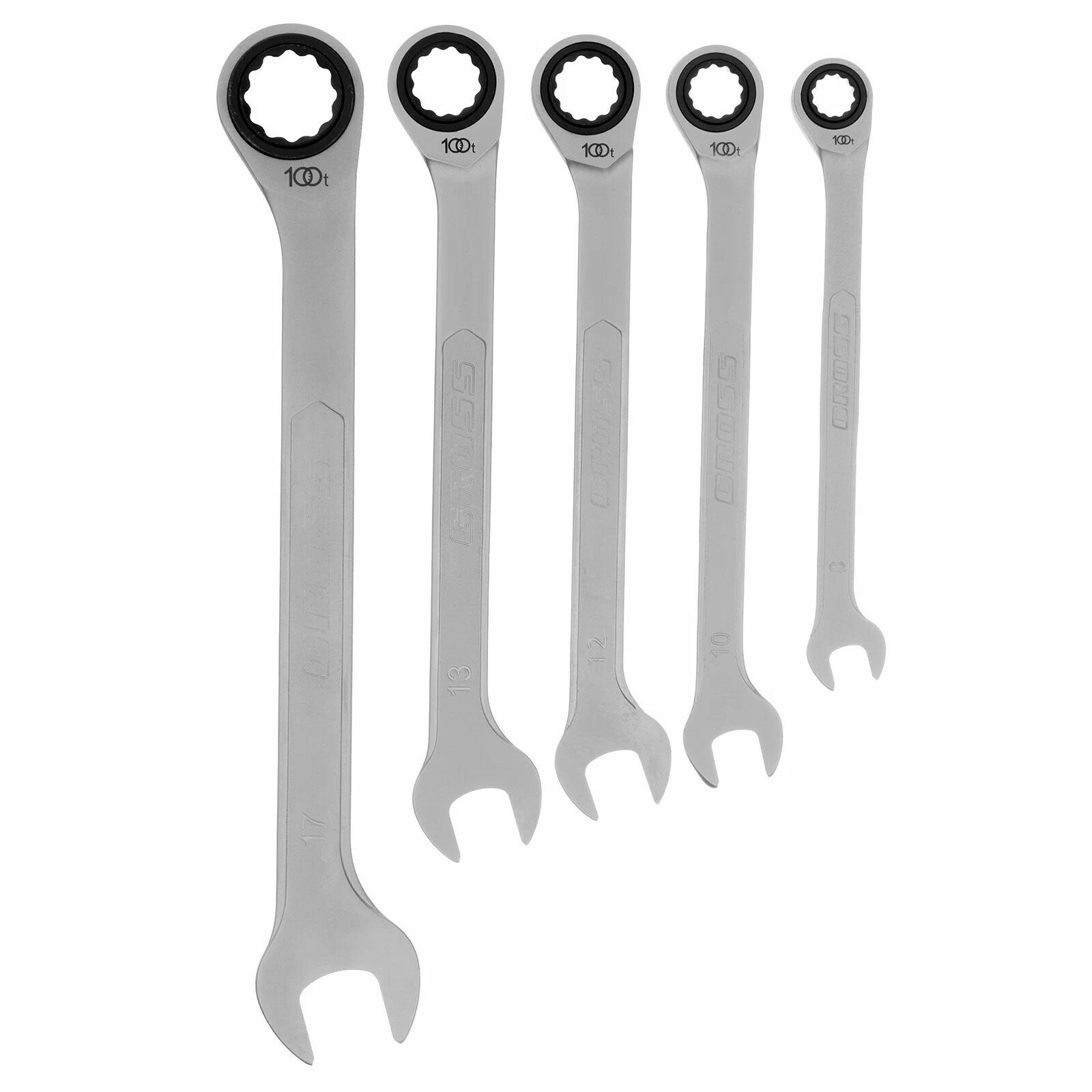 Набор ключей комбинированных трещоточных, количество зубьев 100, СRV, 5 шт, 8- 17 мм Gross ( 14858 )