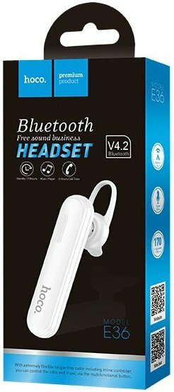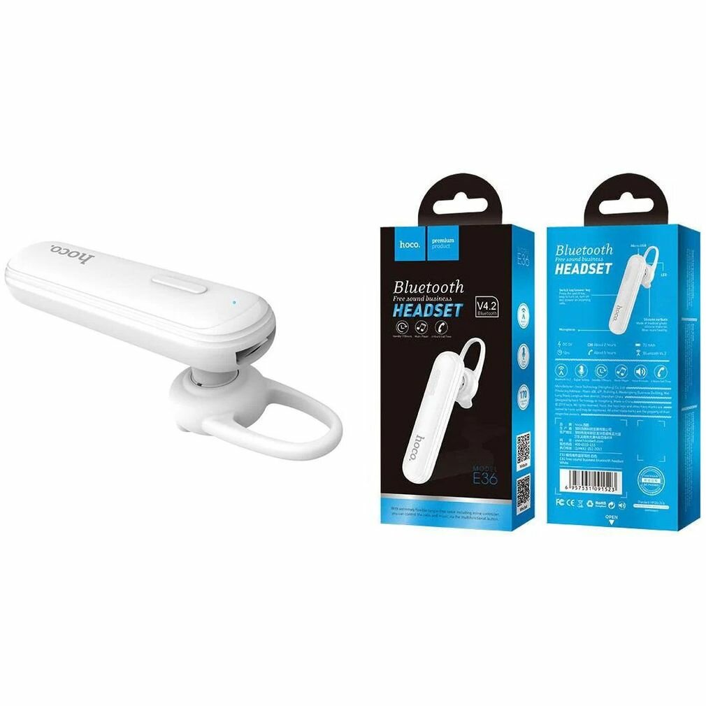 Bluetooth-гарнитура Hoco E36 Free sound business, вкладыш, моно, BT 4.2, 70 мАч, белая Hoco 7636888