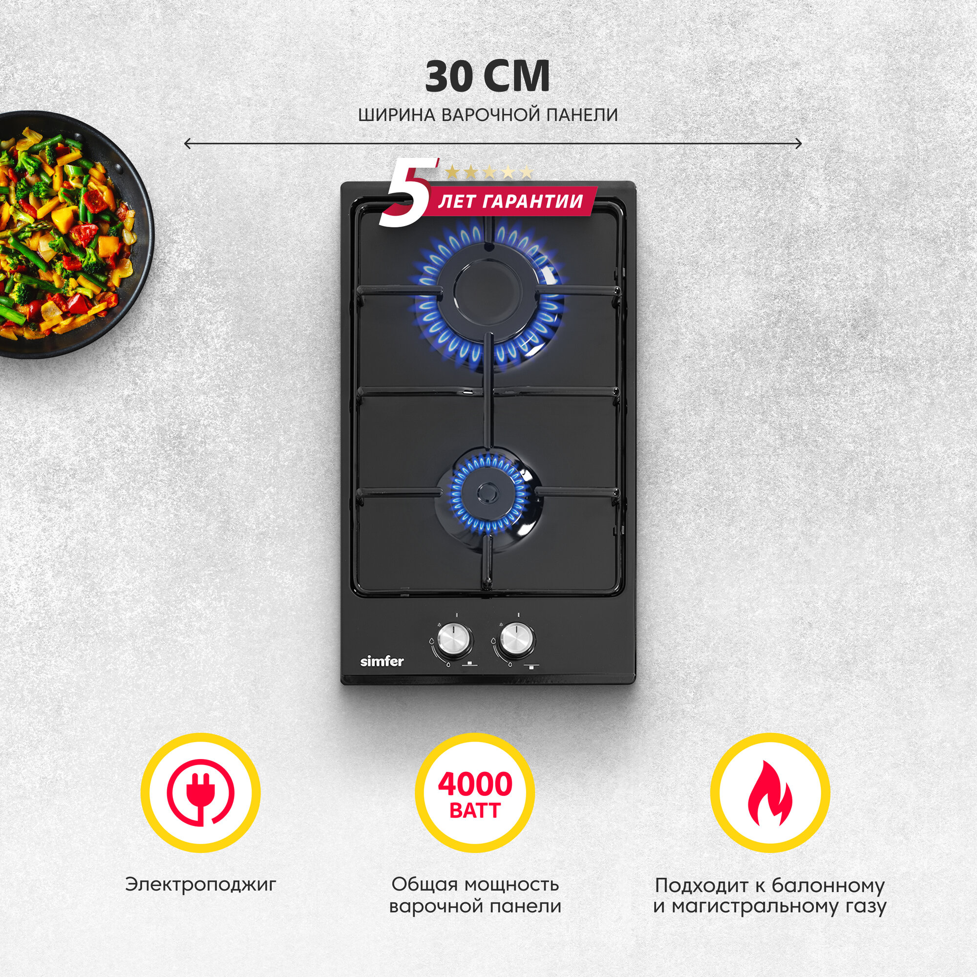 Газовая варочная панель Simfer H30V20B420, с автоподжигом