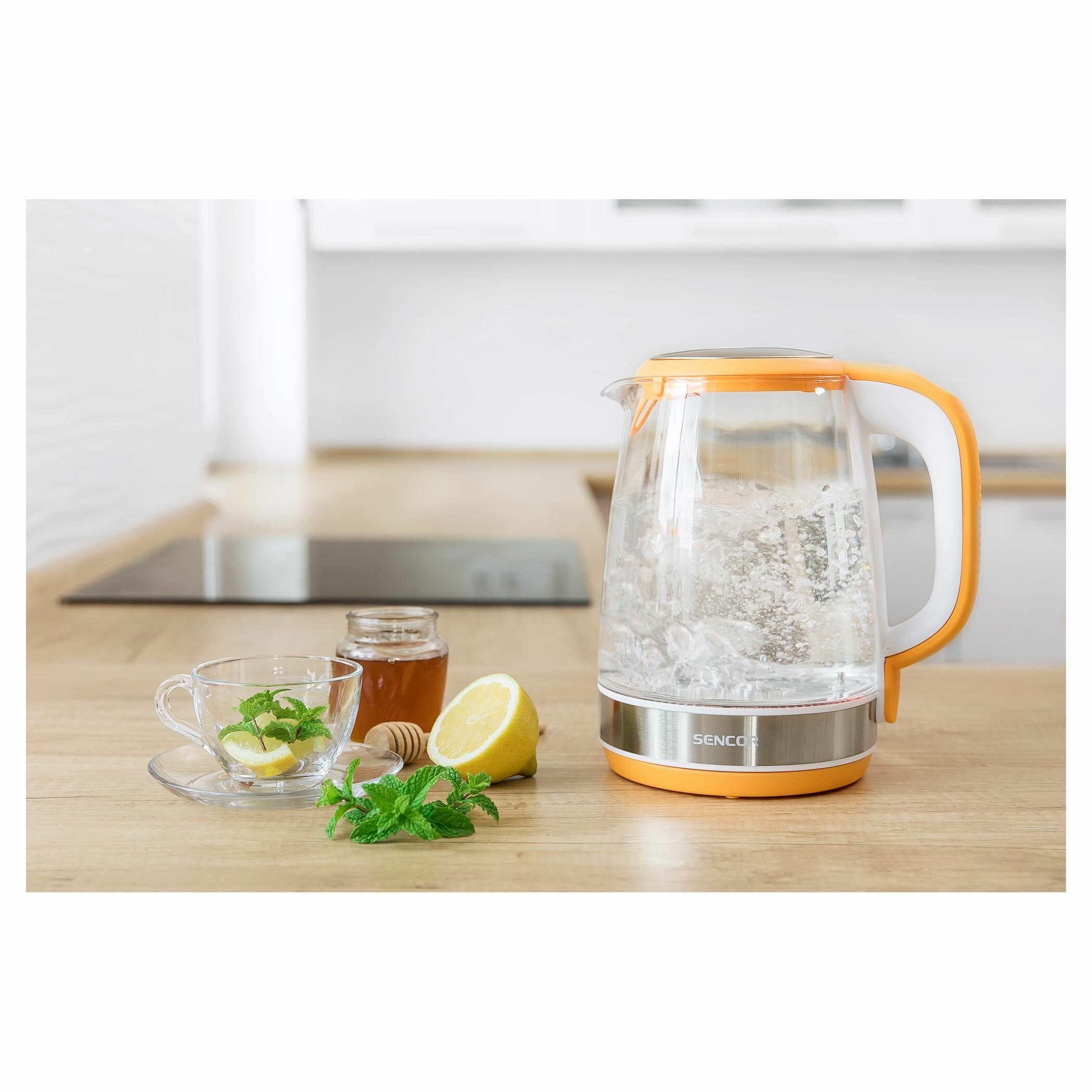 Электрический чайник Sencor SWK 2193OR,2200 Вт, 2 л, корпус-стекло, оранжевый
