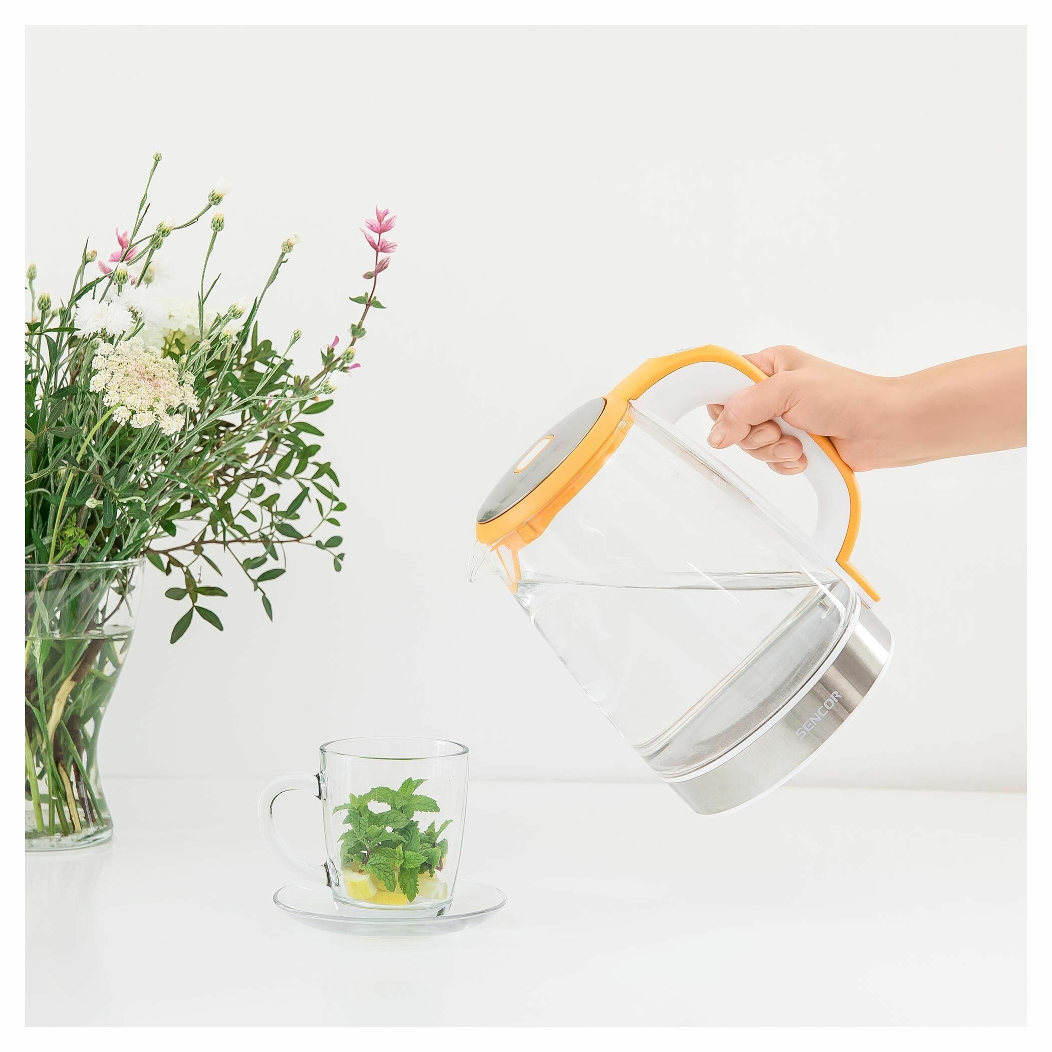 Электрический чайник Sencor SWK 2196YL, 2200 Вт, 2 л, корпус-стекло, желтый