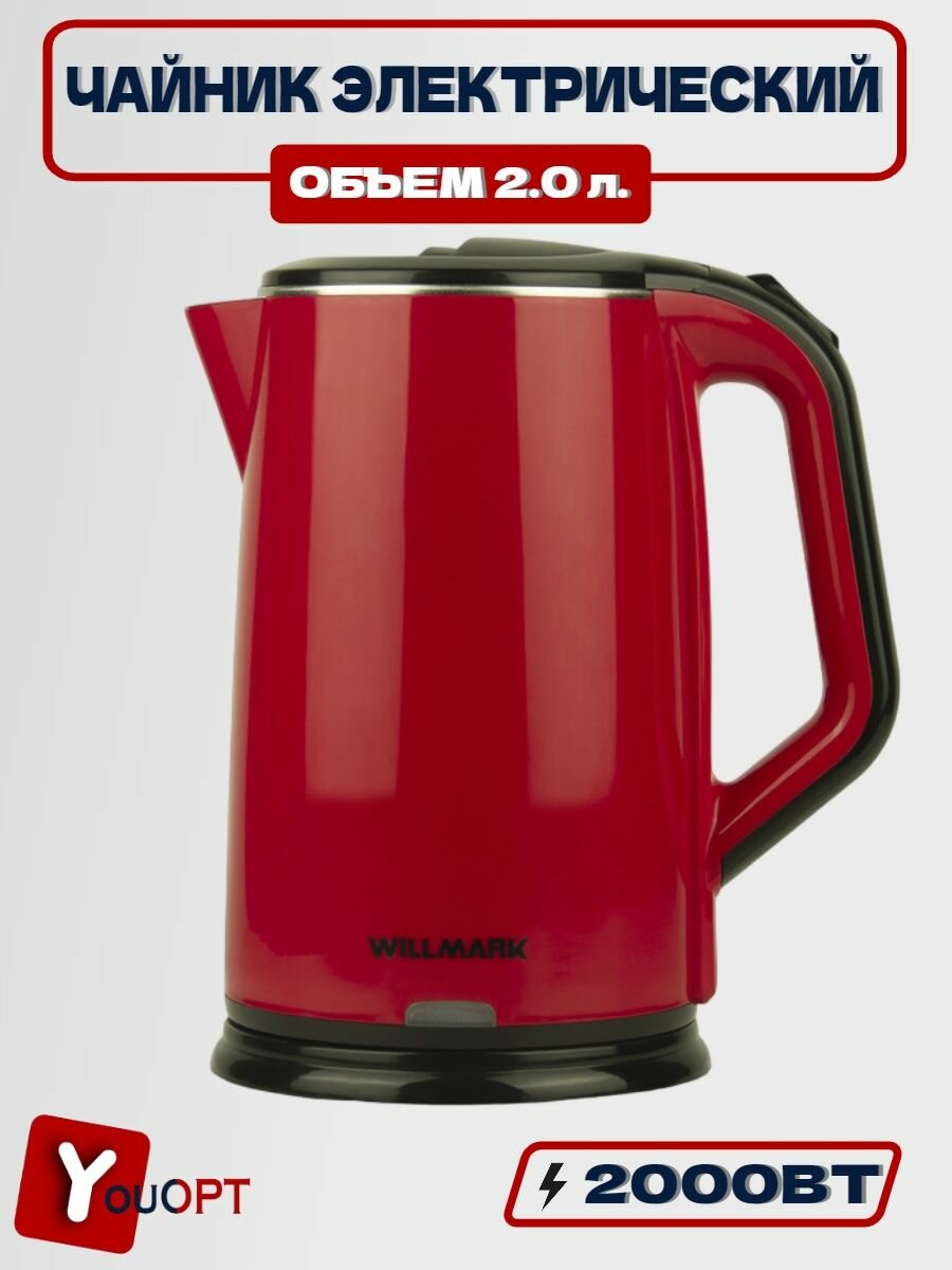 Чайник WILLMARK WEK-2012PS /Темно-красный, 2,0л, 2000Вт,двойные стенки.эффект термоса