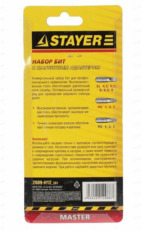 Stayer Набор Биты "master" с магнитным держателем,12 предметов 2609-H12_z01 .