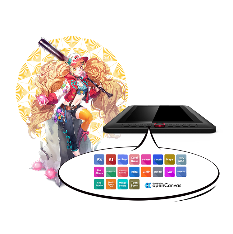 | Плюсы: | Удобный, хороший отклик, в комплекте идет пленка, перчатка, наконечники для пера, тряпочка для экрана, подставка; можно отдельно настраивать кнопки для каждого приложения, да и в целом программа для настройки очень простая и понятная. |