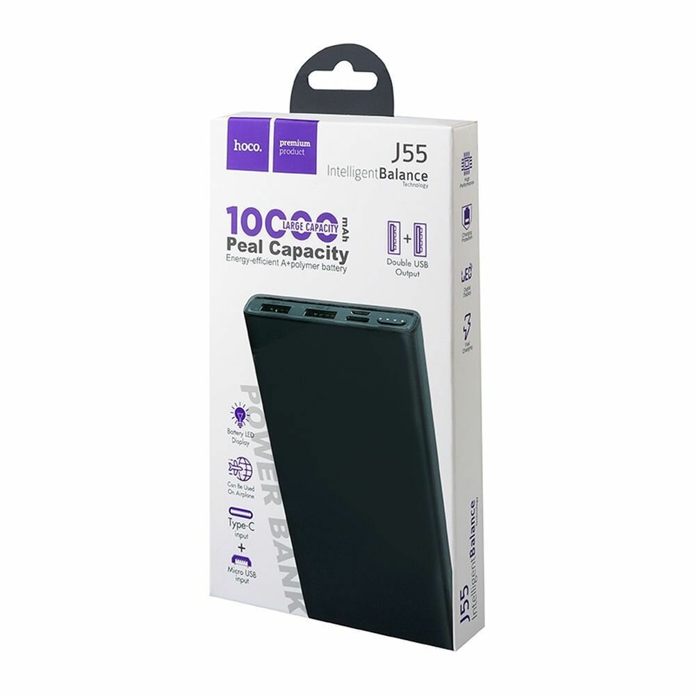 Мобильный аккумулятор HOCO J55, 10000mAh, 2 USB выхода, Micro и Type-C входы, LED индикатор, черный (6931474718389)