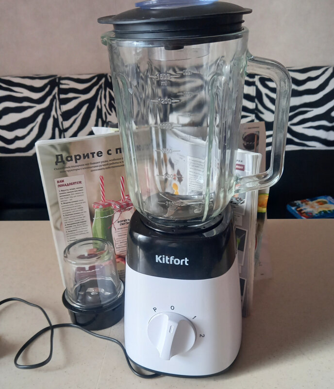 Блендер изготовлен очень качественно. Выглядит стильно. Оснащен 2 скоростями и импульсным режимом. В комплекте есть измельчитель, в котором мелю кофе. (Перешла на зерновой кофе и не покупаю молотый). Кувшин сделан из толстого стекла объемом 1,5 л. оснащен 4 ножами из нержавеющей стали! Объема хватает с запасом. Прорезиненная крышка для кувшина предохраняет от разбрызгивания продуктов. Кувшин моется легко. Блендер быстро измельчает различного рода продукты до однородной массы. При работе стоит на столе устойчиво т.к. оснащен ножками-присосками. Готовили: пюре из яблок для джема и для пастилы, молочные и фруктовые коктейли, различные смузи, суп пюре. Импульсный режим работает отлично. Очень удобный и функциональный блендер. Простое управление. Отличный блендер за свои деньги. Стеклянная чаша. Легко моется. Есть модели с аналогичными характеристиками, но гораздо дороже. Впечатления только положительные! Покупкой очень довольна! Кроме плюсов этого блендера ещё подарили приятный бонус магнитик с китом, спасибо! Хотим получить крутой подарок от фирмы Kitfort кухонные весы. Рекомендую покупать модель Kitfort КТ-1381. |
