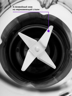 2. Стеклянная колба 3.Хорошо измельчает 4.Ломает лёд 5. Насадка кофемолка 6. Перемалывает в однородную массу 7. Привлекательная цена |