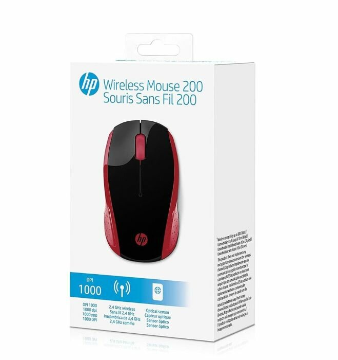 Мышь беспроводная HP Wireless Mouse 200 Empress Red, 1000dpi, Красный/Черный 2HU82AA
