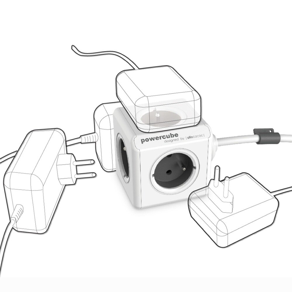 Купить Сетевой удлинитель (фильтр) Allocacoc/DesignNest PowerCube Extended GREY 1300GY/DEEXPC, 5 розеток, провод 1,5 метра, без USB, крепление в комплекте